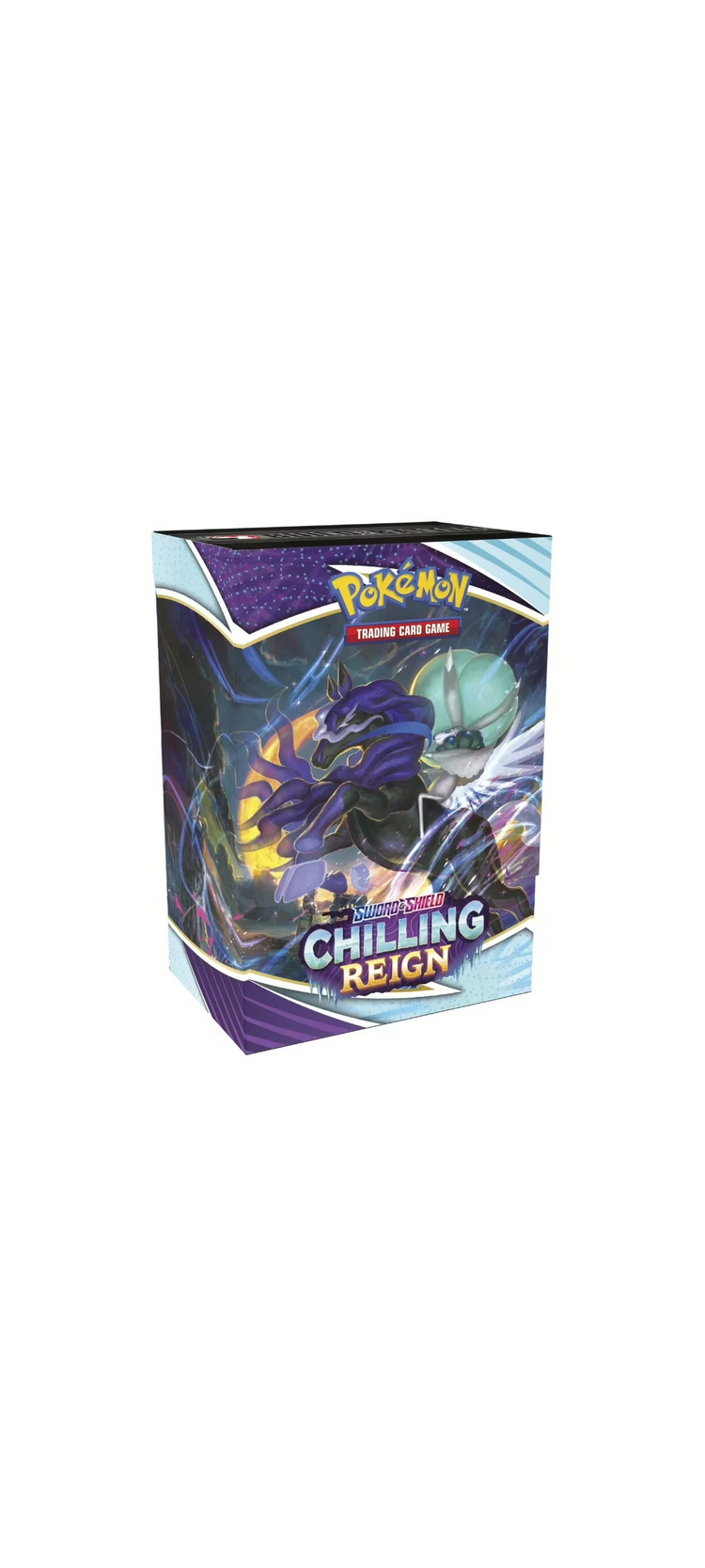 Nutze den Vorteil mit Pokémon der gefrorenen Länder, mit dem mächtigen Ice Rider Calrex VMAX und Shadow Rider Calrex VMAX – sowie den Galar-Formen von Articuno , Zapdos und Lavados ! Phantomspuk , heulende Schneestürme und wilde Kämpfe – erweitere die Bereiche deiner Pokémon-Strategie mit neuen Kräften und neuen Möglichkeiten. Mach weiter, trotz geisterhafter Opposition, und erringe den totalen Sieg im Land des geisterhaften Schnees mit der Pokémon TCG: Sword & Shield - Chilling Reign- Erweiterung !