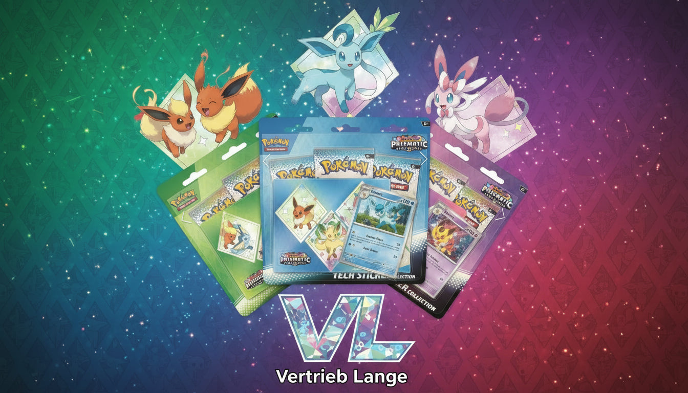 Die drei neuesten Evoli-Entwicklungen - niedlich und majestätisch - sollten im Kampf nicht unterschätzt werden! Verbünde dich mit Folipurba, Glaziola & Feelinara, die als holografische Promokarten erscheinen, und dekoriere deinen Computer, dein Tablet oder Handy mit starken Tech-Stickern! Du erhältst ausserdem neun Booster Packs der besonderen Erweiterung Scarlet & Violet – Prismatic Evolution, die nur darauf warten, von dir geöffnet und in deine Sammlung aufgenommen zu werden.